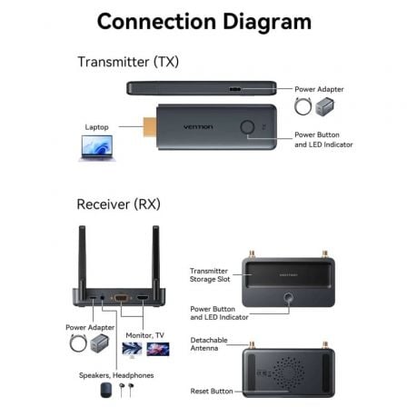 - Puertos del transmisor: HDMI / USB-C