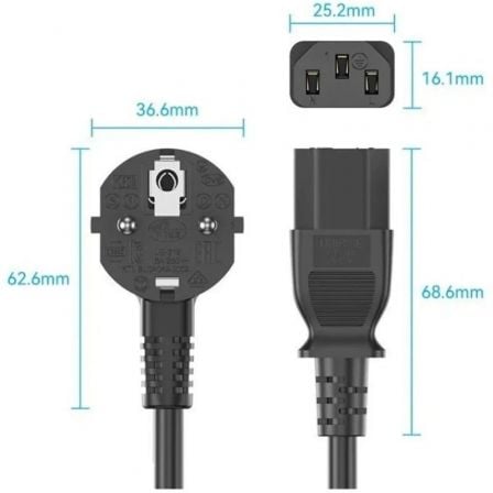 Cable de Alimentación Vention ZCJBAC/ IEC C13 Hembra – CEE7 Macho/ 1.8m/ Negro