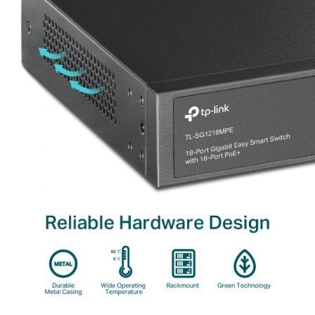 El TL-SG1218MPE es totalmente compatible con dispositivos PoE, como ‘cámaras IP, puntos de acceso y teléfonos IP. También funciona con ‘dispositivos cableados no PoE para proporcionar conexiones gigabit, como’ PC, impresoras y IPTV.’