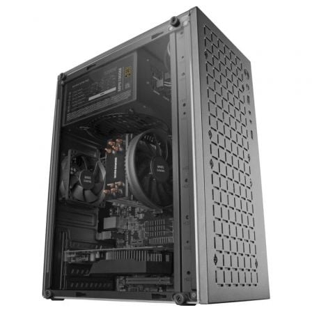 ‘Diseño profesional con rejilla metal-MESH que mejora la estética y el ‘rendimiento y ventana lateral total. Configuraciones de alto rendimiento’ en formato MicroATX y Mini-ITX y ventilador trasero ultrasilencioso FDB’ incluido.