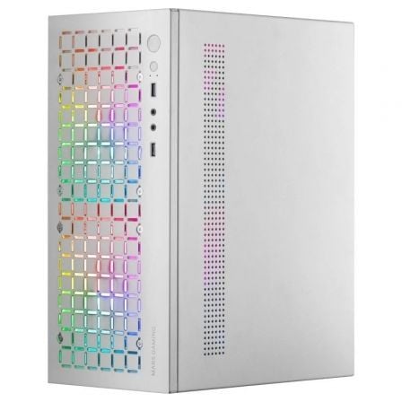 ‘Diseño innovador con rejilla metal-MESH que mejora la estética y el ‘rendimiento y ventana lateral total. Configuraciones gaming de alto ‘rendimiento en formato MicroATX y Mini-ITX. 2 ventiladores Fixed RGB ‘frontales