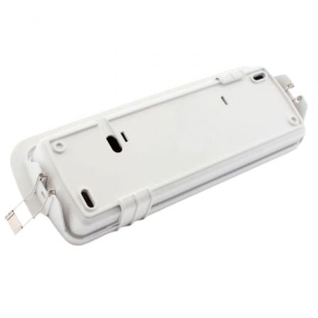 Luminaria LED de emergencia fabricada con un cuerpo de policarbonato en blanco y un difusor del mismo material. Cuenta con una potencia de 400 lúmenes, un ángulo de apertura de 120º y un IP43.