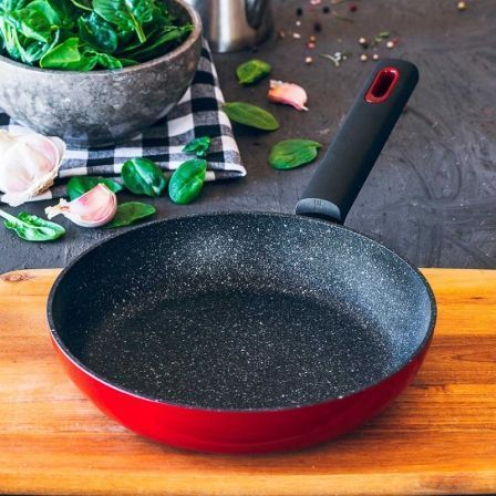 ‘Con un diseño moderno, los detalles de su mango ergonómico y el cuerpo ‘exterior en color rojo le confieren un aspecto muy actual. Es una sartén’ con una gran relación calidad-precio.