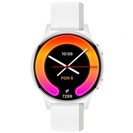 - Funciones: Hora y fecha, monitor de frecuencia cardíaca, modos deportivos, monitoreo del sueño, contador de calorías, clima, recordatorio de inactividad, historial de actividades, podómetro, recordatorio de hidratación, notificaciones, cronómetro/temporizador, calendario menstrual, cambio de esfera, encontrar reloj/teléfono, directorio telefónico, llamadas telefónicas, notificaciones SMS, visualización de notificaciones, iluminación con movimiento de muñeca, control de música, cámara remota, calculadora, altavoz, conversaciones BT