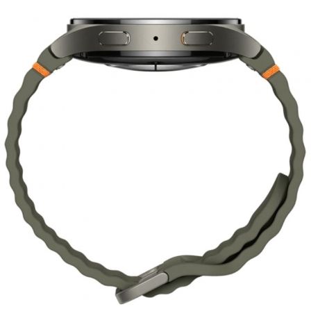 Sigue presumiendo de estilo con Galaxy Watch7. Su diseño combina un cristal flotante con unas puntadas de color que añaden un toque de elegancia a tu muñeca; y las ondulaciones de la correa te ayudarán a estar preparado para cualquier entrenamiento. Está disponible en dos tamaños: pequeño y grande, y en diferentes colores: verde, gris y beige.
