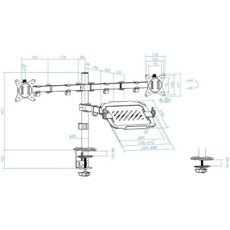 Soporte de Mesa para 2 Pantallas 17′-32′ y Portátil, Negro