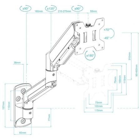 - Peso soportado de pantalla: Mínimo 2 kg. Máximo 10 kg