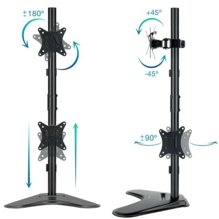 Soporte de Sobremesa para 2 Monitores TooQ DB1703TNV-B/ Giratorio/ Inclinable/ hasta 9kg