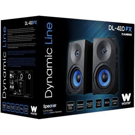 Woxter Dynamic Line DL-410 FX es un compacto sistema de altavoces ‘estéreo para gamers que ofrece una fantástica calidad de sonido para tus’ dispositivos multimedia, como televisores, reproductores MP3/MP4, ‘tablets y equipos de sobremesa. Este sistema de altavoces dispone de ‘controles de volumen, bajos y agudos en su panel lateral y cuenta con ‘conexión estándar de 3.5 mm para garantizar su compatibilidad con la ‘mayoría de los dispositivos multimedia digitales.