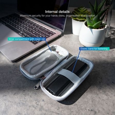 - Estuche compacto para guardar o transportar disco duro portátil.