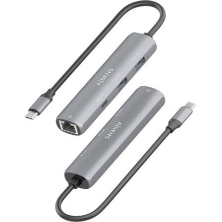 Hub USB Tipo-C Aisens ASUC-4P039-GR/ 1xUSB Tipo-C/ 2xUSB/ 1xRJ45/ Gris
