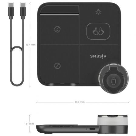 Base de carga Inalámbrica Aisens ASCH-15W4WC062-BK/ 15W/ Negro