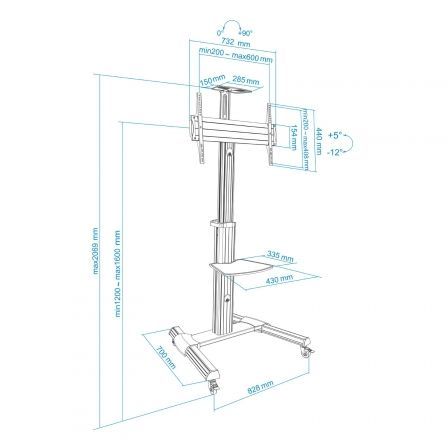 - Rango de ajuste para la altura de soporte: 1200-1600 mm